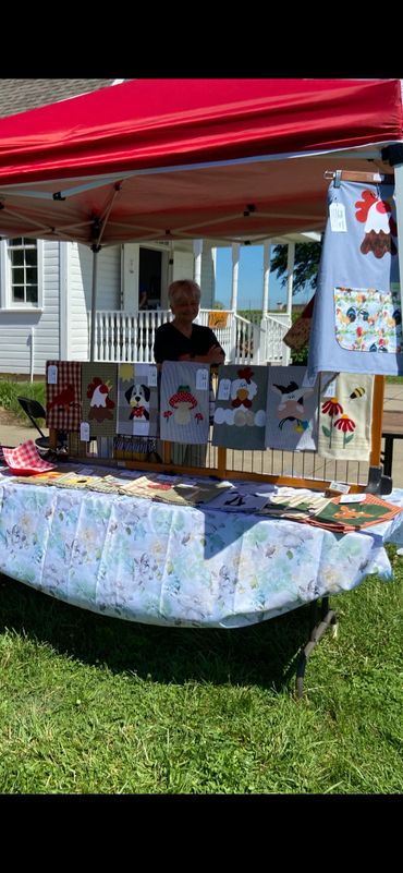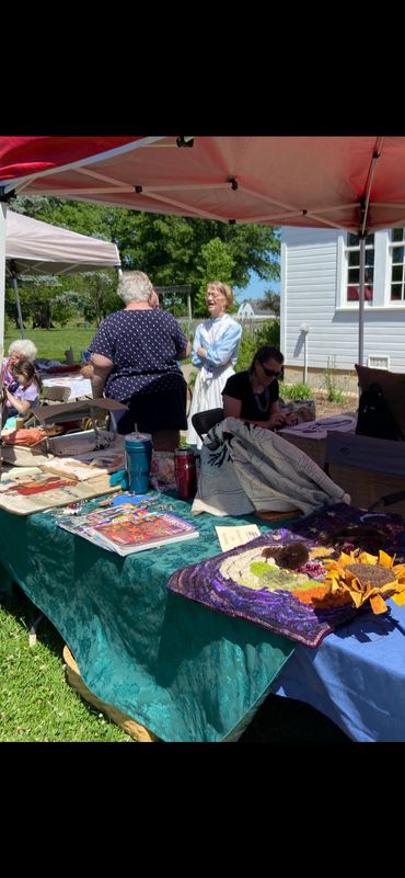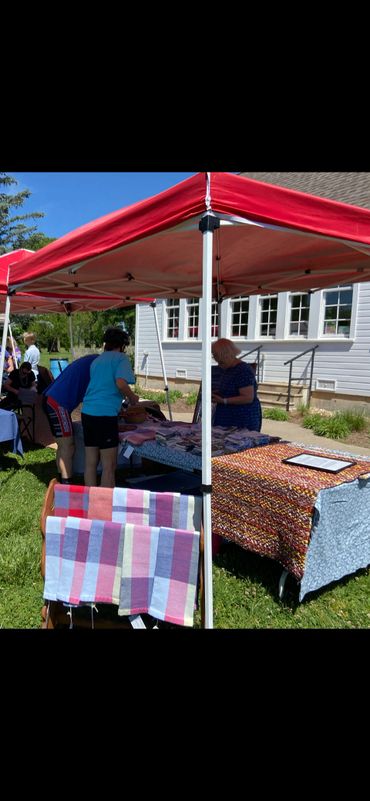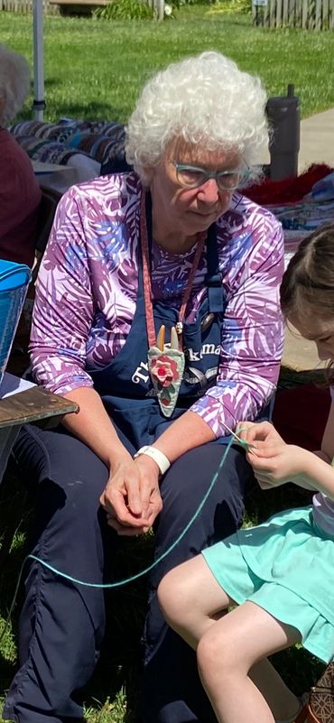 Mary Sturdevant and Lynn Schluns are working on rug punching and basket weaving.